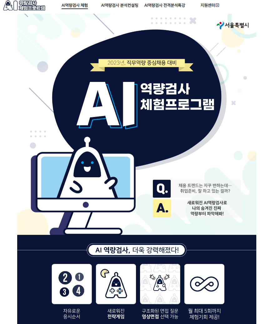 그런 AI기술을 이용해 서울시에서 역량검사 체험프로그램을 만들었다고 합니다.